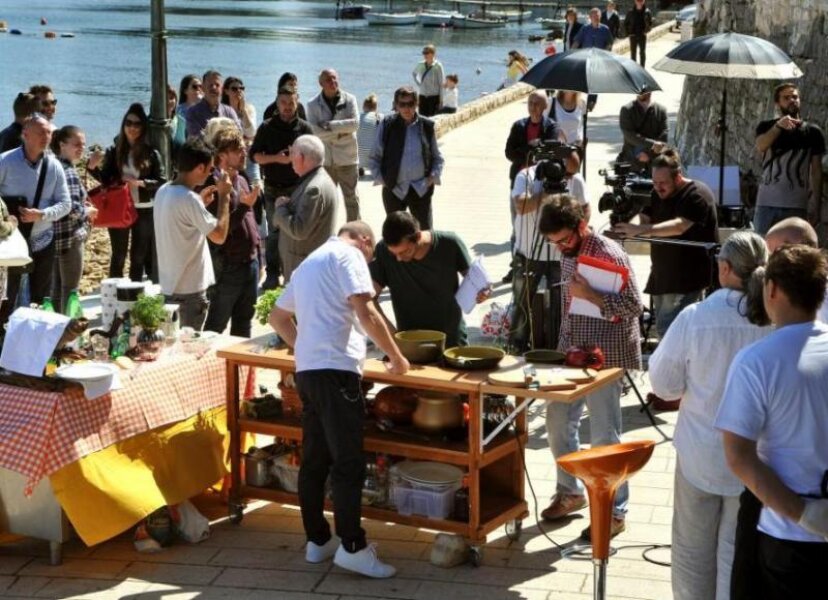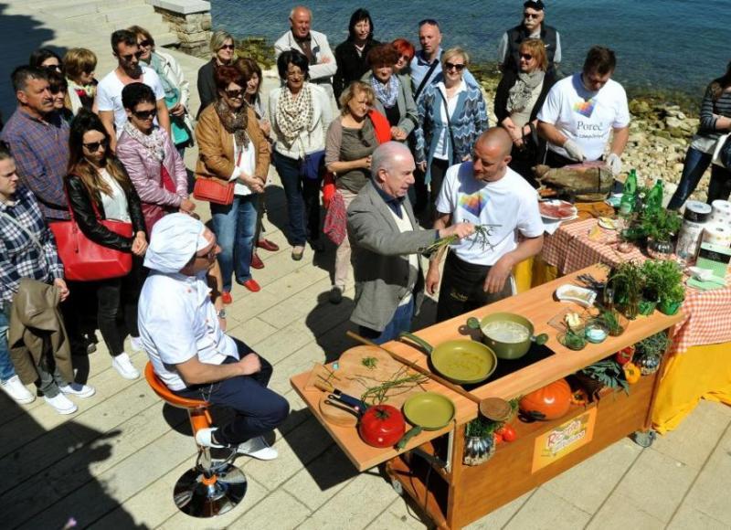 Davide Mengacci je u međuvremenu na porečkom lungomareu u pratnji naših kuhara Aleksandra Lončara i Aleksa Relje pred kamerama prikazao kompletnu pripremu tri autohtona jela: pljukance sa šparogama, pršutom i kozicama, bakalar s palentom i fuže s tartufima. Za vina pobrinuo se porečki vinar Ivan Damjanić, a za maslinovo ulje uljara Nina i Nivija Stojnića iz Vabrige. Tu su bile i kuharice iz Vižinade iz udruge Slatka Istra koje su u Poreč donijele istarske kolače.