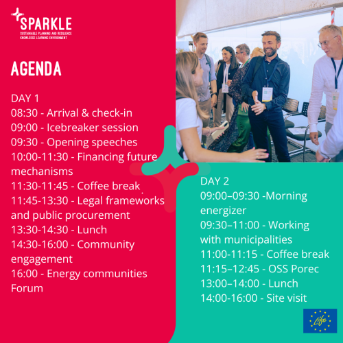 Sudionici će učiti o pravnim okvirima za energetske zajednice, financiranju projekata čiste energije, suradnji jedinica lokalne samouprave i energetskih zajednica te uključivanju građana. Poseban naglasak bit će na primjerima dobre prakse – od javnog modela nabave u Strasbourgu do porečkog projekta "Sunčani ured", koji educira građane o energetskoj tranziciji.