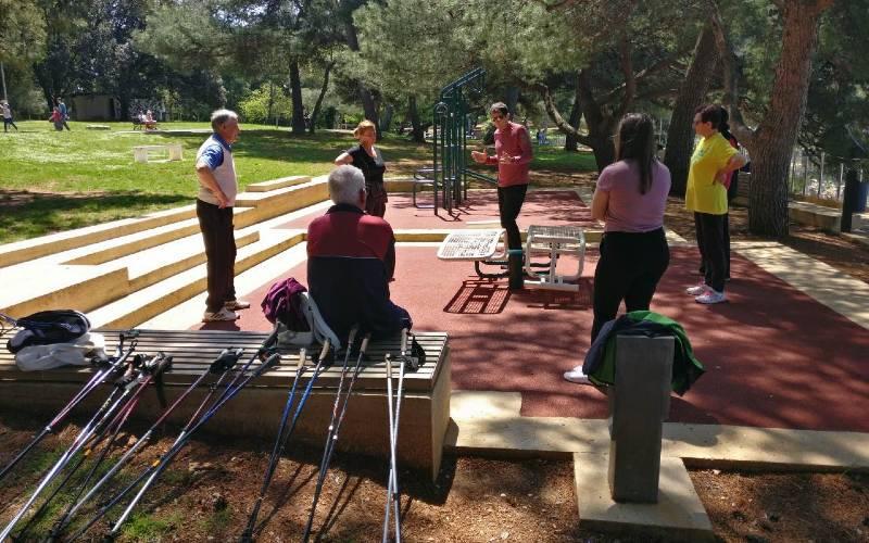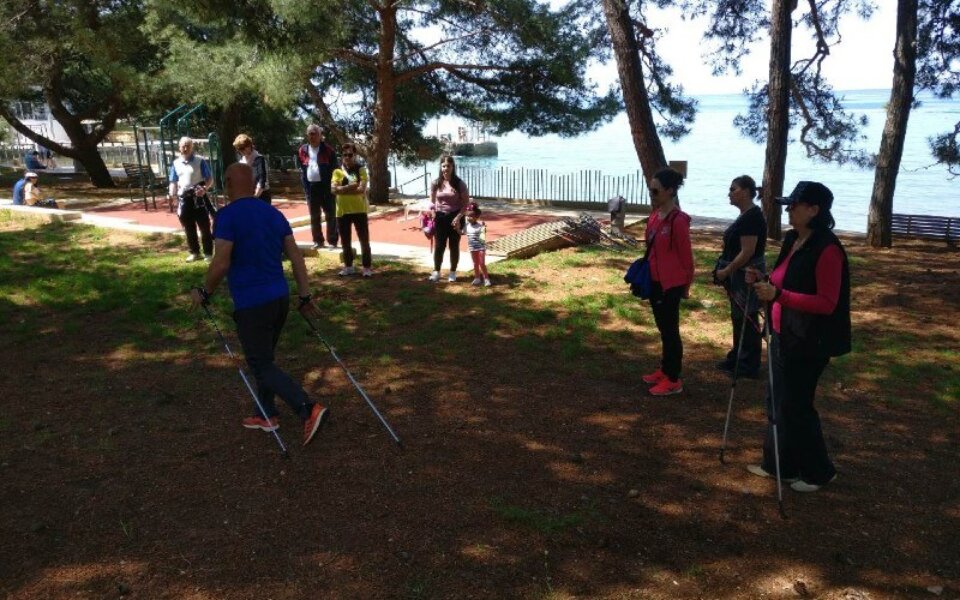 Kineziolozi su građane koji koriste štapove za nordijsko hodanje poučavali o njihovom ispravnom korištenju, kako bi imali svoju svrhu u rasterećivanju određenih dijelova tijela i omogućili lakše hodanje na duljim trasama. (kb)
