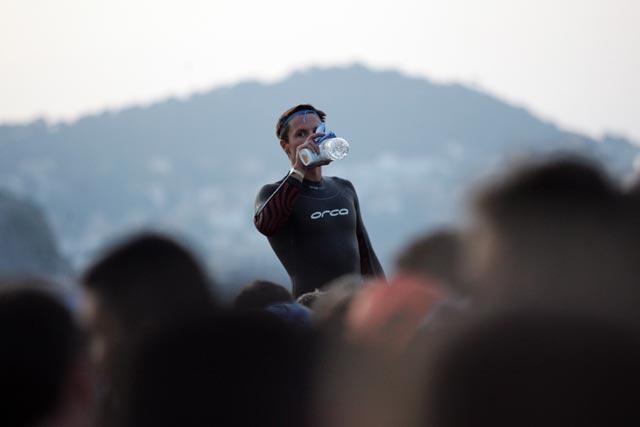 Dizanje, hladan tuš, doručak i pravac taxi. U Zonu sam došao 15min prije samog otvaranja, stao u red i čekao. Provjerio sam bike, napunio bidone, napumpao gume i polako se počeo zagrijavati. Start je bio predviđen za 6:30. Minute su prolazile jako sporo, nikako da sve skupa krene. Nervoza je bila itekako prisutna. Svakakve misli letjele su mi kroz glavu, a prilikom oblačenja gornjeg dijela odijela opet se začuo prasak. I to onaj prasak kad odijelo puca po šavovima… Da, puklo mi je odijelo na desnom ramenu u duljini od otprilike 15cm. Odlično, taman pred samu utrku za koju sam se spremao punih 7 mjeseci, prošao uspona i padova, izliječio ozljedu… voda je bila toliko hladna da sam u nju bio spreman skočiti i bez odijela! Eto, toliko o mojoj želji da odradim još jedan Ironman!