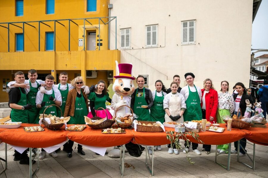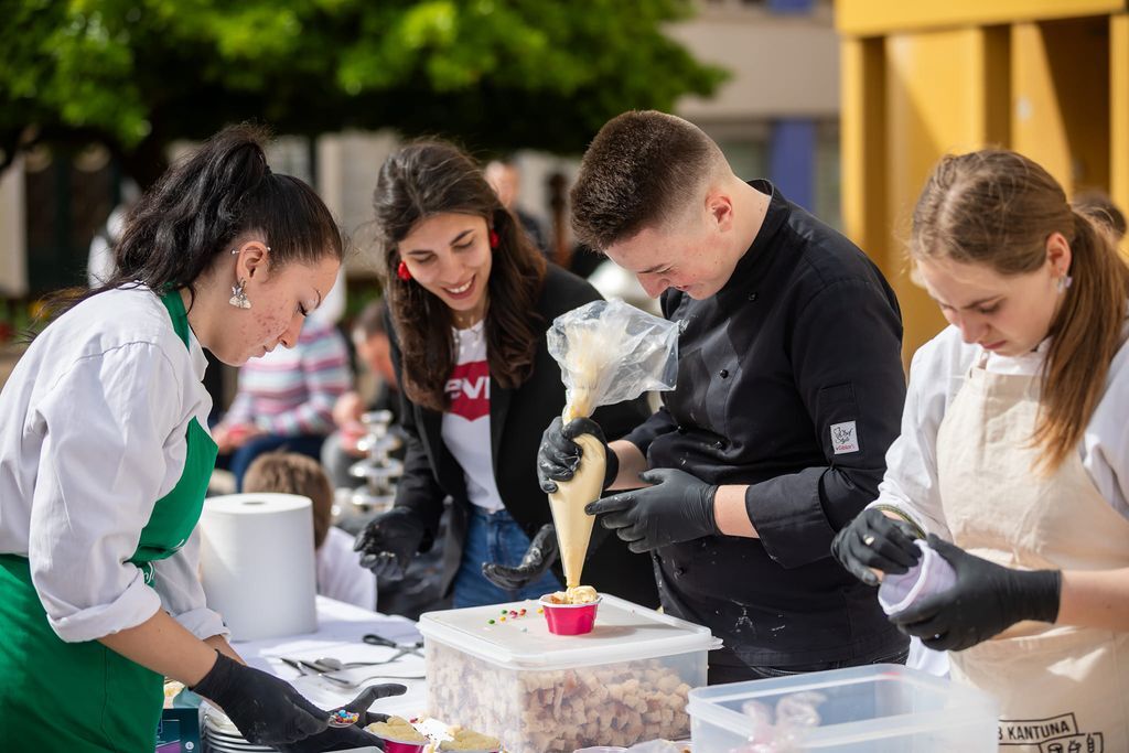 Učenici su pod vodstvom stručnih učitelja pripremili više od 5.000 fritula, 500 mini pinca, 70 komada velikih pinca, orahnjača i povetica. Također pincu, koja je istarska tradicionalna uskrsna slastica, ponuđena je na jedan novi moderan način – narezana u čašici na kockice s kremom od vanilije. U ponudi su bile i fritule napravljene od bezglutenskog brašna te 300 ofarbanih jaja.