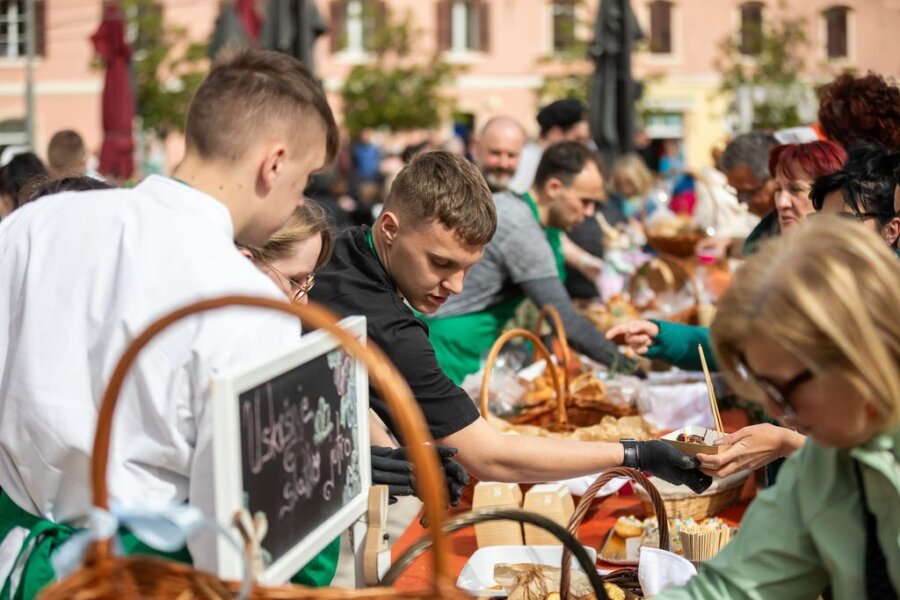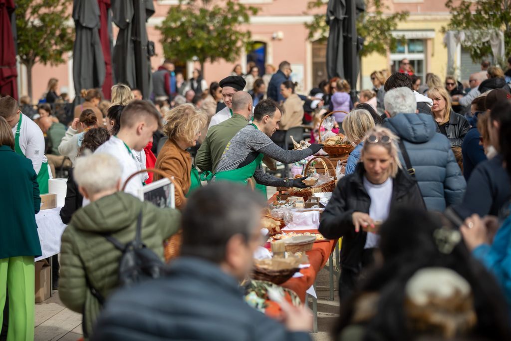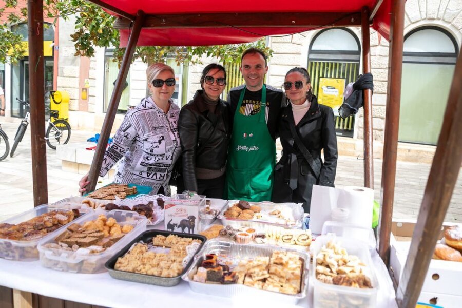 Trg slobode bio je dekoriran maslinovim grančicama, pisanicama, cvijećem i zečićima, a zrakom se širio miris slastica. Mentori i učenici TUŠ Antona Štifanića iz Poreča organizirali su Slatko jutro gdje su brojni posjetitelji besplatno degustirali tradicionalne istarske slastice – pince, fritule, jajarice, povetice, uz neizostavne čokoladne fontane.