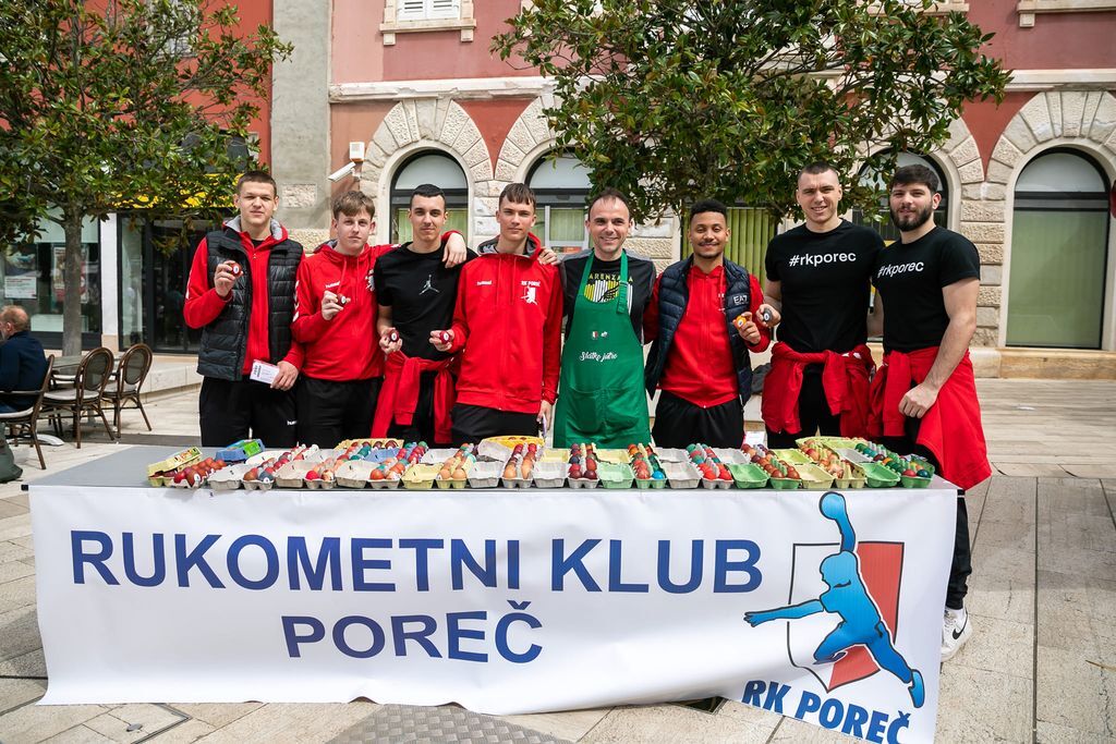 . Na trg je doskakutao i veseli zeko koji je dijelio čokoladna jaja i slatkiše. Preko 350 pisanica koje su pripremili vrijedni roditelji RK Poreča, podijelili su igrači, a mnogi građani kući su otišli s ulaznicama za utakmicu i svi se jako dobro zabavili, dok je Udruga SOS Šape skupljala vrijedne donacije za pomoć životinjama.