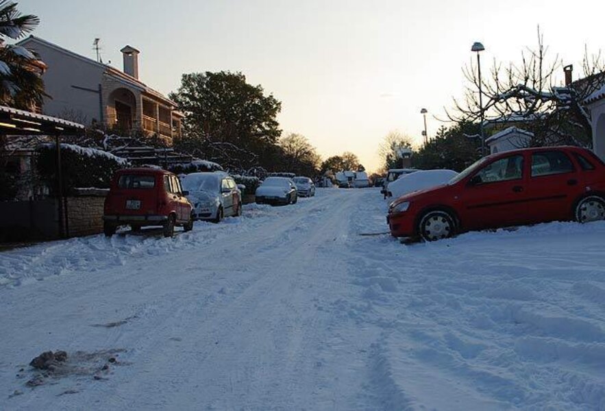 Nedjeljno jutro u Poreču bilo je nalik onima u daleko hladnijim krajevima daleko od mora i toplih paralela. Snijeg se na ulicama i cestama potpuno smrznuo, pa je bez zimske opreme ili zimskih guma bilo nemoguće savladati čak i manje uzbrdice i nizbrdice. I tu su se posebno iskazali nesavjesni i neuki (ne)vozači koji su ih uporno, tvrdoglavo pokušavali savladati bez obzira na to što su iza njih stajale kolone vozila sa zimskim gumama. Posebno je "zanimljivo" bilo na punktovima poput prilaza Domu zdravlja, cesti ispred hotela "Park", usponu u naselje Poreč jug, u zavoju kod restorana "Parenzana" ili na uzbrdici prema rotoru i Stanciji Portun. Uzbrdica nakon raskrsnice u Vrsaru u smjeru Flengi vozačima bez zimskih guma bila je nedosanjani san.