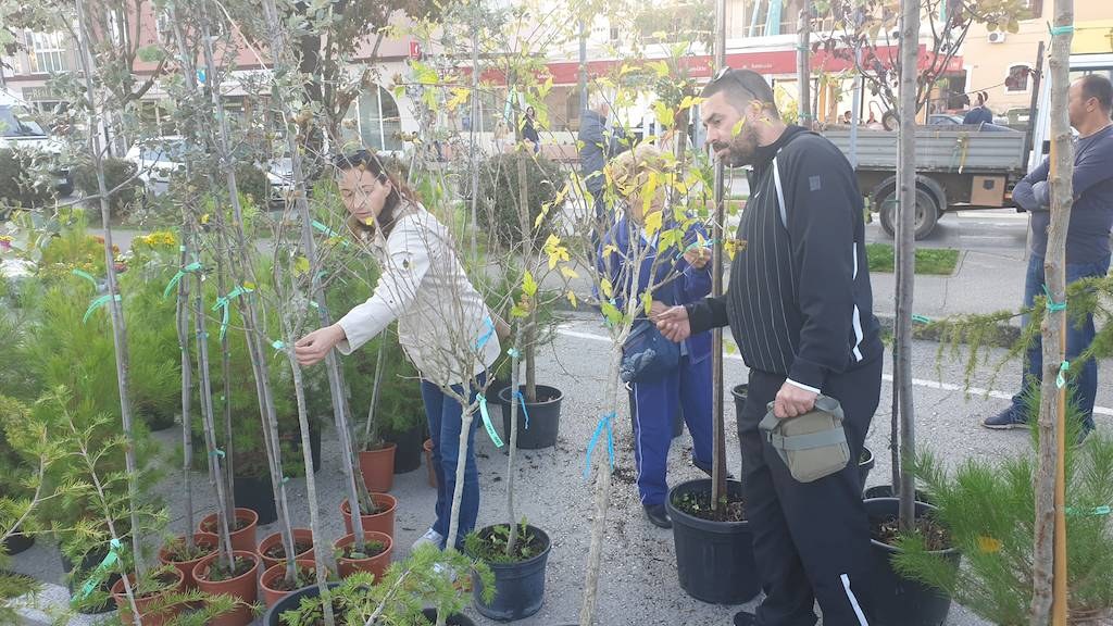 Dok građani nastoje odabrati nešto po svojem ukusu i željama, djelatnici “Usluge” dovoze sadnice i iskrcavaju ih preko puta roza zgrade.