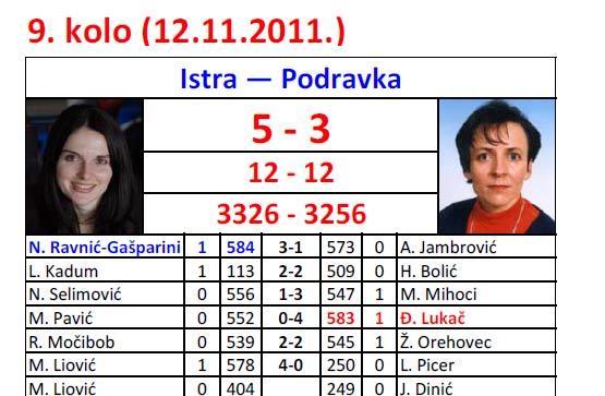 Kuglačice KK "Istra" su rezultatom 5:3 ovoga vikenda iz svog Doma obrtnika ispratile gošće iz koprivničke "Podravke" koje su na kraju kući otišle sa 70 čunjeva minusa.