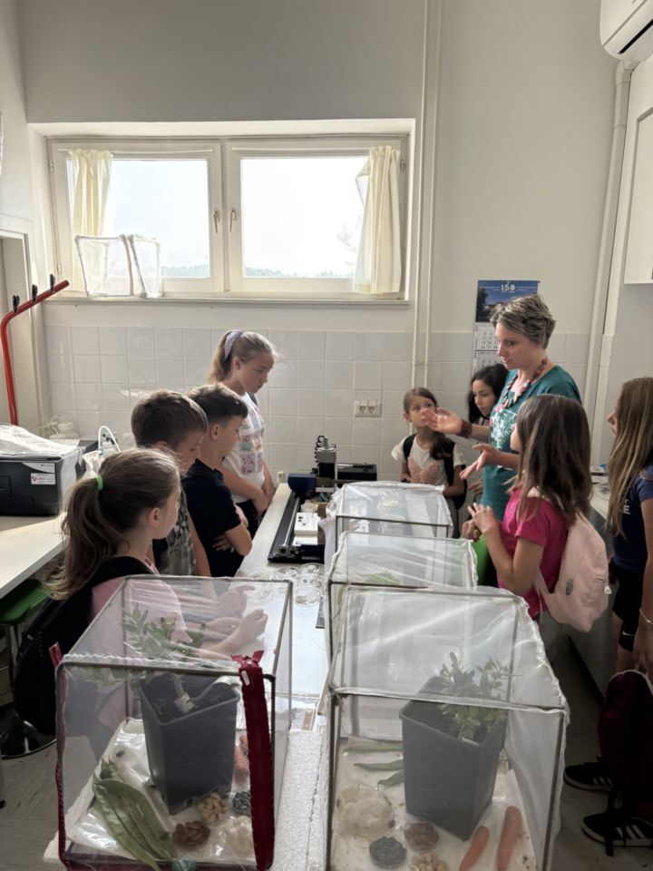 U Laboratoriju za zaštitu bilja dočekali su ih znanstvenici koji su im predstavili razne korisne i štetne kukce, te ispričali čime se bave u zaštiti bilja.