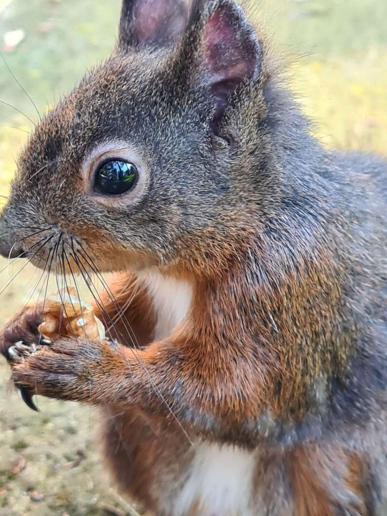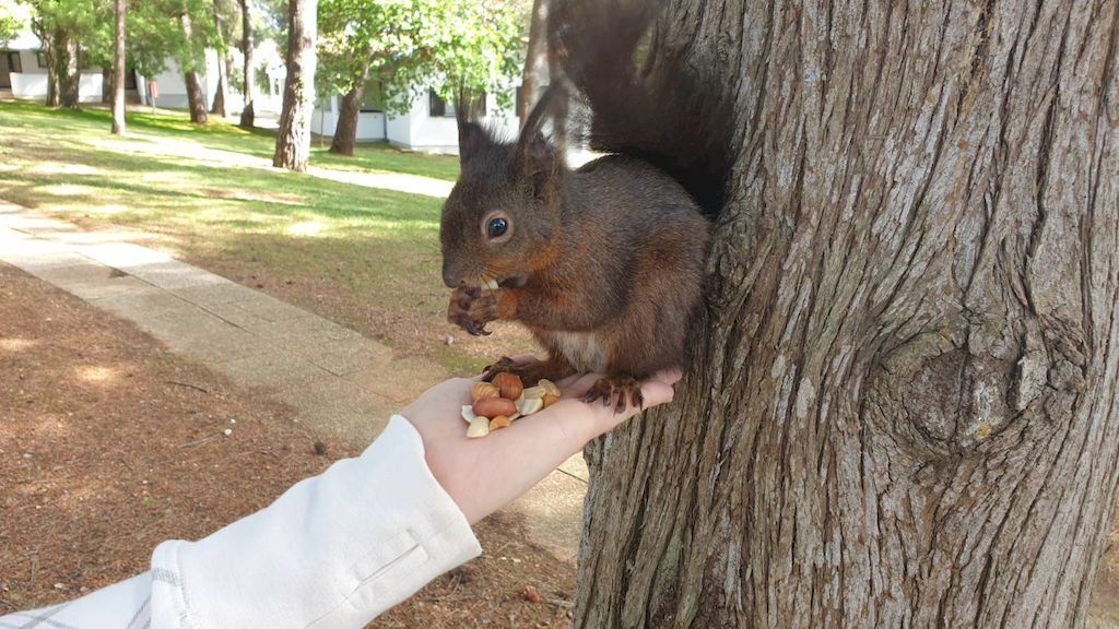 Uglavnom, Koki je mjesecima imao povlašteni tretman u odnosu na druge, zdrave i neozlijeđene vjeverice. Hrana i piće dva do tri puta dnevno, uvijek na istome mjestu, padala kiša ili sijalo sunce. Pogledom smo ga Conny i ja svaki put ispraćali dok se bolnom mukom penjao u sigurnost svoga gnijezda gdje je strpljivo čekao da ozdravi i ojača.