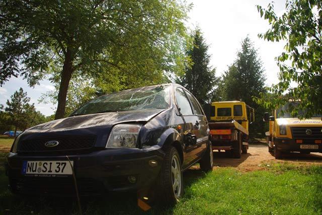 "ford" je nakon udarca u nasip i slovenski "audi" završio na krovu