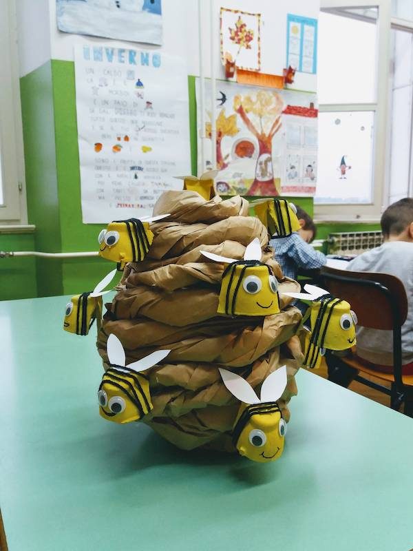 Tijekom sata likovne kulture učenici su izradili košnicu s pčelama od recikliranoga materijala. (dp)