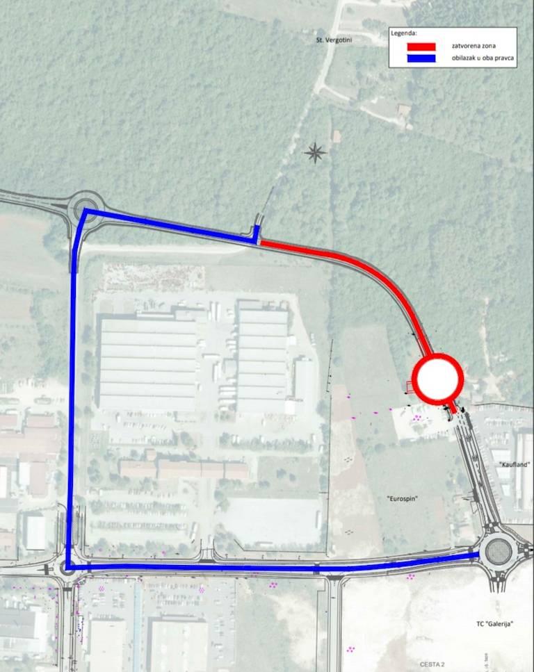 Od 10 do 18. prosinca u ulici Mate Vlašića (cesta prema OŠ Finida) na dionici između raskrižja za naselje Stancija Vergotini i ulaza u TC Kaufland na snazi će biti privremena regulacija prometa, javljaju iz gradske uprave.