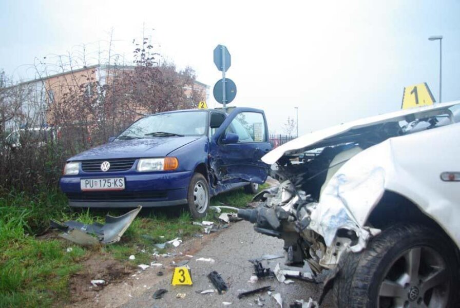 Vozač bijelog pola u vozilu je bio sam i nije ozlijeđen. Vozačica plavog vozila se, neslužbeno doznajemo, žalila na bolove u kuku, zbog čega je prevezena na pregled u pulsku bolnicu. Dvojica mladića koji su se sa njom vozili prošla su bez ozljeda, ali su, prema izjavama svjedoka, bili u vidnom stanju šoka.