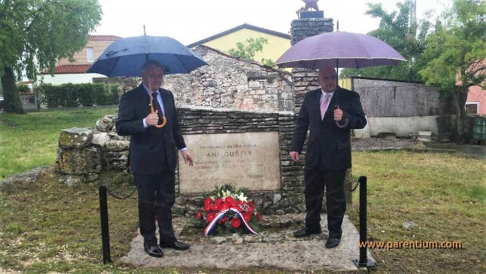 Prije sjednice delegacija vijećnika i predstavnika antifašističkih boraca i sudionika Domovinskog rata položila je vijence na spomenik palim borcima Poreštine pokraj gradske palače te na onom u spomen