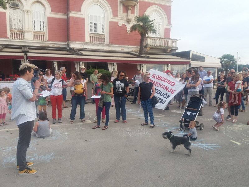 Okupili su se brojni građani pred kojima je Nataša Vajagić, programska koordinatorica za ženska i LGBT ljudska prava u CGI-ju, kazala da se u Hrvatskoj ne igraju s djecom, već se djecom poigravaju.