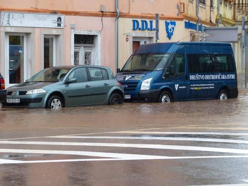 Jutrošnja obilna kiša u Puli prouzročila je poplave koje su su ubrzo stvorile prometni kolaps. Prema fotografijama čitatelja Glasa Istre, vidljivo je da je kritično na području Punte, gdje se automobili doslovce probijaju kroz vodu, a zaplivao je i novi kružni tok u Šijani. (K.T.)