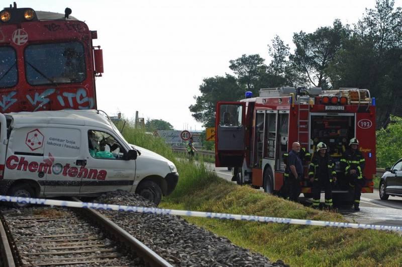 Vlak koji je prometovao na relaciji Buzet - Pula. u kojem se nalazilo tridesetak putnika, naletio je na kombi vozilo peugeot partner, požeškog poduzeća Chemotehna, osječkih registarskih oznaka.