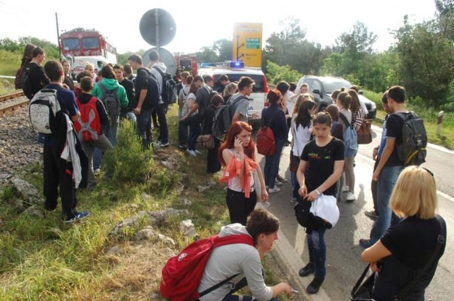 U vlaku nije nitko ozlijeđen, a u razgovoru s učenicima doznajemo da su čuli jak prasak i osjetili naglo kočenje vlaka. Očevid je u tijeku. (M. SARDELIN, Hina; snimio D. MEMEDOVIĆ)