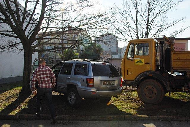 Stanari su mogli parkirati ili u svojim dvorištima, ili u pokrajnjim ulicama, ali se opet našao biser koji je svoje vozilo parkirao na zelenoj površini, ispred kamiona, tako da smeta radovima.