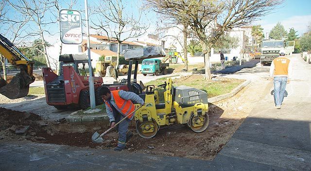 Ronjgova ulica je jučer bila zakrčena teškim strojevima, jer su radnici ”Ceste” nakon tjedana kiše konačno dočekali lijepo vrijeme, da mogu završiti asfaltiranje parkirališta u njoj.