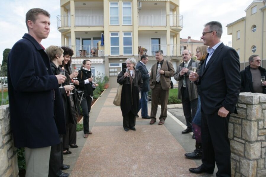 pozdravio je prisutne izjavom kako je neobično svečanošću obilježavati početak radova, ocijenivši kako je to više ”za političare nego za privrednike”, te pojasnivši dva osnovna razloga za slavlje. Prvi je razlog početak izgradnje najveće zgrade u 18 godina postojanja tvrtke na čijem je čelu, a drugi je dovršetak izgradnje projekta ”Porečanka” u Puli na oko 15.000 četvornih metara brutto površine.