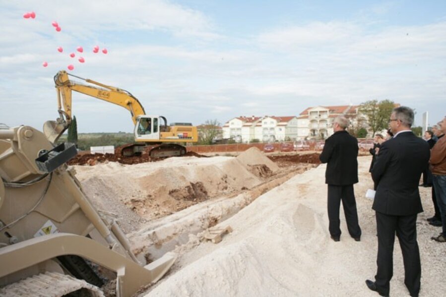 Rukovatelj buldožera je kao simboličnu gestu otvorenja gradilišta svojim strojem u zrak pustio dvadesetak balona, da bi se nakon toga svi prisutni okrijepili na prigodnom domjenku pod šatorom.