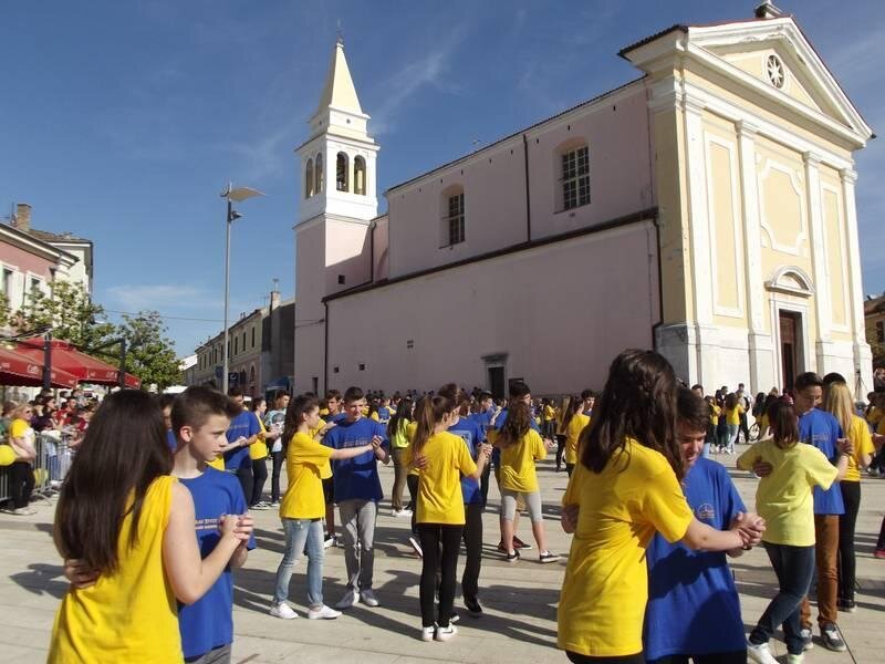 Porečki Trg slobode na Dan zdravih gradova Hrvatske, 20. svibnja, ispunilo je više od 200 osnovnoškolaca porečkih škola predstavljajući projekt „Rasplesani razredi-osnaživanje djece kroz ples“ po prvi puta na glavnom gradskom trgu.