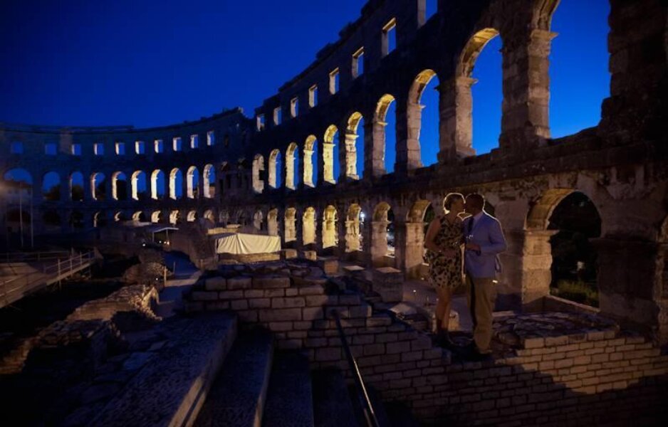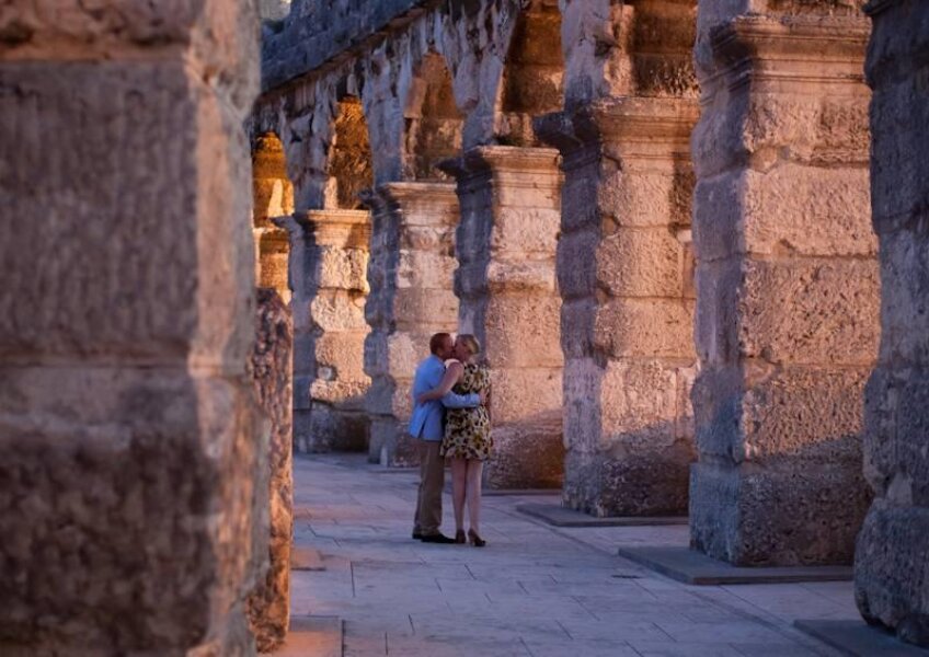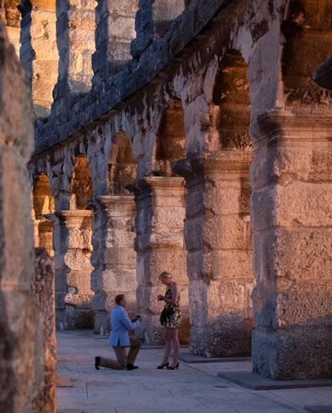 Tamara je zaista sinoć bila uzbuđena, a ispričala nam je i kako je Mark cijeloga dana bio nervozan. Malo ju je iznenadio kad se prije no što su krenuli u Arenu posebno dotjerao, ali rekao joj je kako nakon light-showa koji će se zbivati u Areni idu na večeru na neko posebno mjesto. Sve je izmislio, ali nije mu zamjerila, jer je iznenađenje koje joj je priredio zaista bilo preveliko. Pulski amfiteatar bio je tako savršena kulisa za predstavu koju je jedan romantičan mladić priredio svojoj budućoj supruzi.(Arheološki press/parentium)