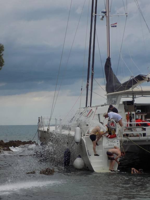U noći sa subote na nedjelju u uvali kod Bolnice "dr. Martin Horvat" odvijala se prava noćna drama. Rovinjski su vatrogasci, naime, u ponoć i pedeset zaprimili poziv u pomoć sa njemačkog katamarana La Bella, koji se nasukao na hridima lijevo od bolničke plaže, nasuprot otoka Muccia.