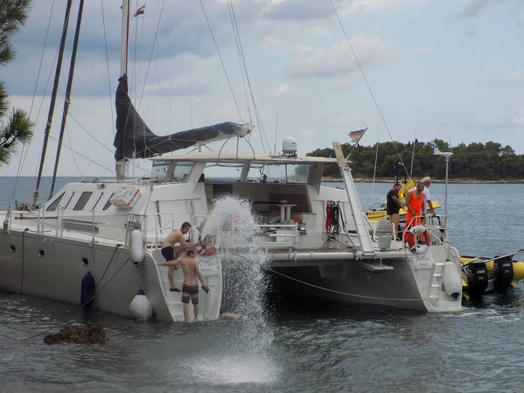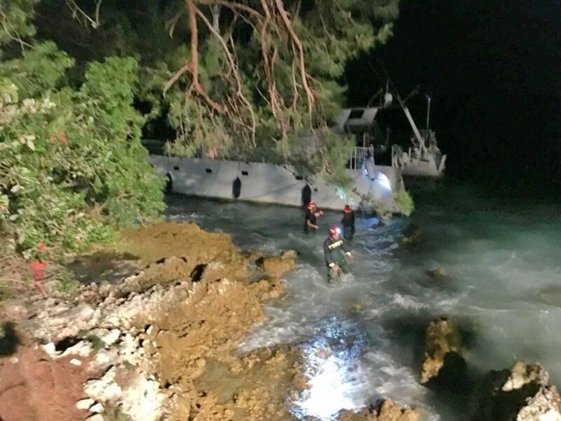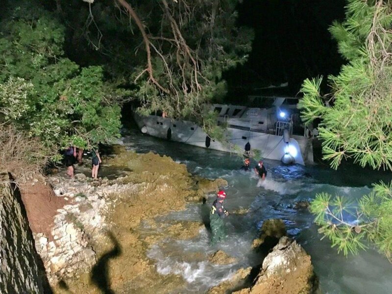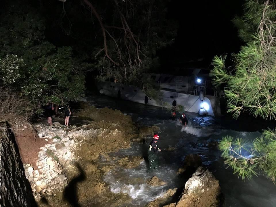 Iz nasukanog katamarana poput vodoskoka lijevala je voda – jer je pretrpio dvije rupe na kobilici zbog čega su dvije vatrogasne pumpe bile u pogonu. Dobra vijest jest da nije došlo do istjecanja goriva, pa su vatrogasci uklonili ranije postavljene brane. Također u pogonu je i seahelp, koji će najvažniju ulogu odigrati prilikom odsukavanja.