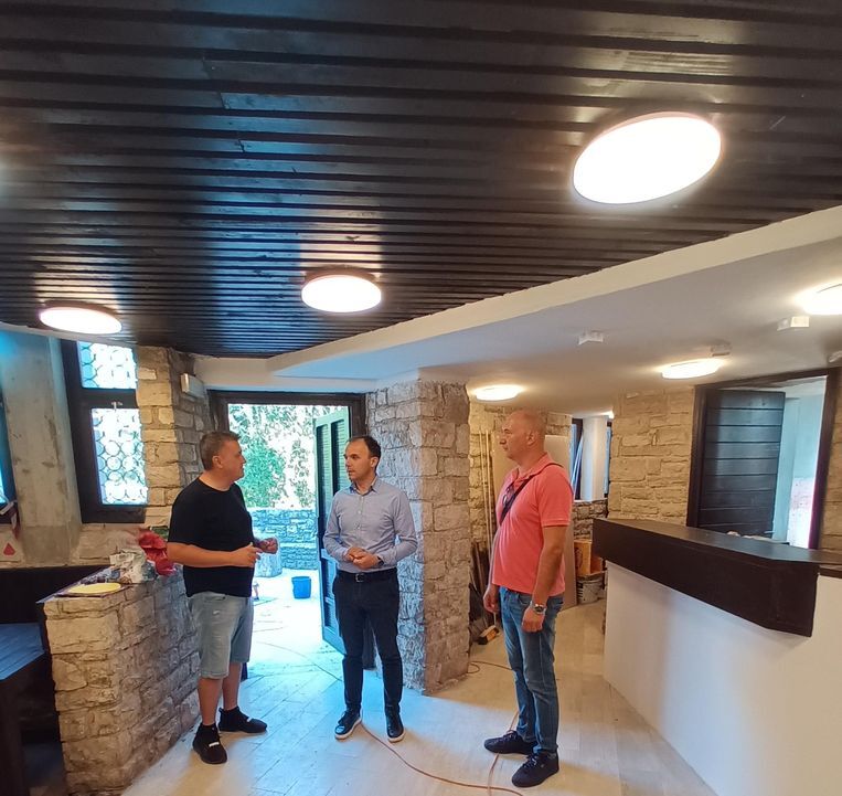 Gradonačelnik Poreča Loris Peršurić danas je s Darkom Saftićem, pročelnikom Upravnog odjela za opću upravu, obišao radove na obnovi spomen doma na Rušnjaku kraj Baderne. Uz njih su bili i drugi suradnici uključeni u projekt.