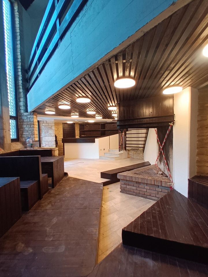 Sanitarije su obnovljene, a postavljene su i nove pločice. U tijeku je žbukanje i bojenje unutrašnjih zidova, ojačavanje i bojenje drvenih stepenica te obnova drvenih klupa i podova.