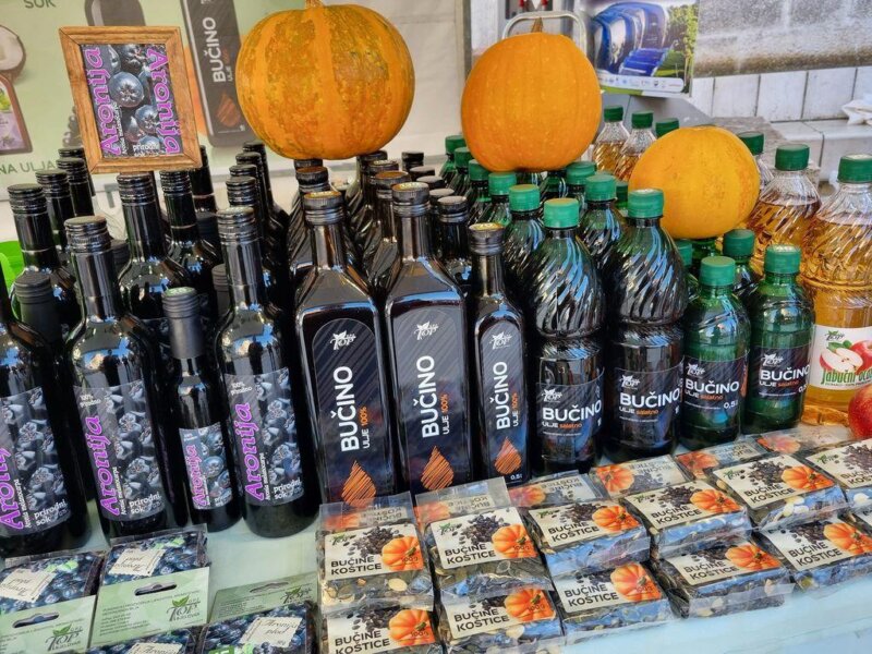 Dvadesetak malih proizvođača predstavlja se svojim lokalnim proizvodima, a upriličeno je i spremanje nekih slavonskih specijaliteta poput čobanca i graha s kobasicom.