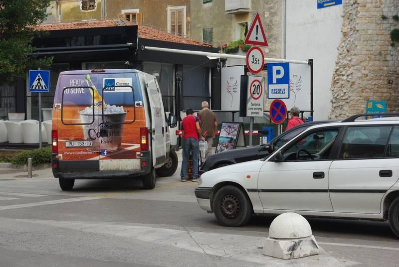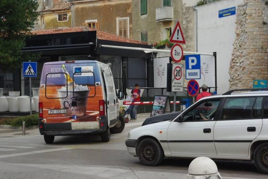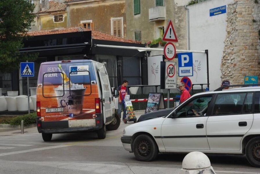 Nedavno snimljene fotografije na Narodnom trgu pokazuju kako neorganiziranost dostave u Poreču nije jedini razlog besmislenim gužvama i čekanju da vam se netko makne, nego se počesto radi i o bezobrazluku dostavljača.