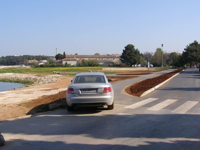 Audi sa trolitarskim turbodizelskim motorom na sebi ima naljepnicu tvrtke koja vrši radove za Grad Poreč. Ako već ne zaradi dovoljno da plati ratu, predlažemo Gradu da njegovom vlasniku podijeli par besplatnih kartica za parkiralište, koje se, podsjećamo, nalazi samo dvadeset metara dalje, preko puta rotora. A slobodnih mjesta bilo je i u blizini ovog Audija, u samoj Peškeri.