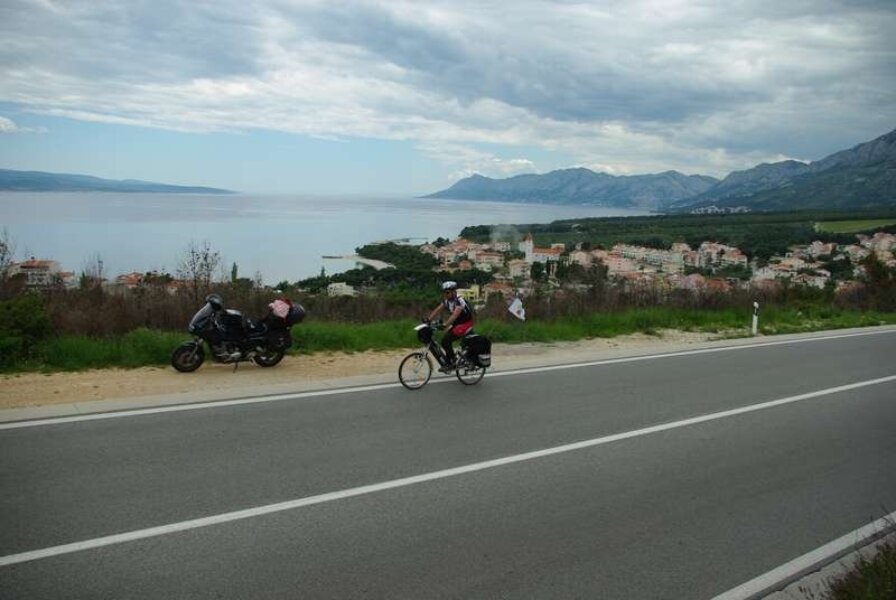 Pozdravivši se sa preljubaznim domaćinima u Podstrani, krećemo odvažno, sa dozom jučer zarađene superiornosti, u novu etapu. Interesantno, ali osjećam neku vrstu treme, kao i svakog dana. Sada nisam siguran da li je to trema ili umor, ali već provjereno nestaje sa prvim znojem. Inače se osjećam odlično (hvala na pitanju). Dobro, ne baš odlično, ali u svakom slučaju bolje nego inače. Njapi se nagomilale novinarske obaveze pa pada dogovor da zapraši do Omiša i tamo me čeka rješavajući iste. Taj čovjek je nevjerovatan. Uspije uređivati internetske stranice sa laptopom na koljenima na nekakvoj autobusnoj stanici, uz cestu.