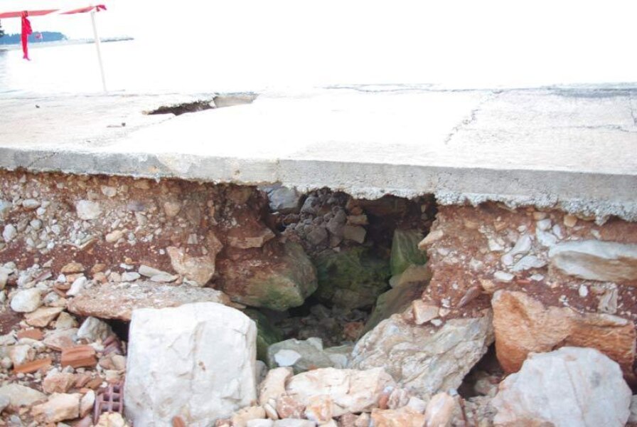 Nakon što smo se osvrnuli na strašan nered kod Materade, čitatelj nas je upozorio na još jednu gradsku sramotu uoči uskršnjih blagdana i turističke sezone: dio šetnice između Picala i Lune na mjestu gdje je nekad bio popularna Bungee jumping dizalica se potpuno urušio, stvorivši duboke i opasne rupe u koje čak i odrasla osoba može upasti i ozlijediti se.