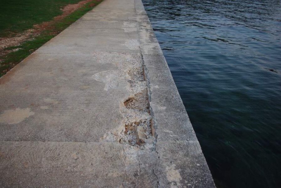 Cijeli je taj dio staze zapravo tanka betonska ploča postavljena na zemljani nasip, uz ponešto kamena i grubljeg šljunka u očigledno nedovoljno dobro utabanoj podlozi. Nadajmo se da će nadležni kod popravka zahtijevati radove po višim standardima.