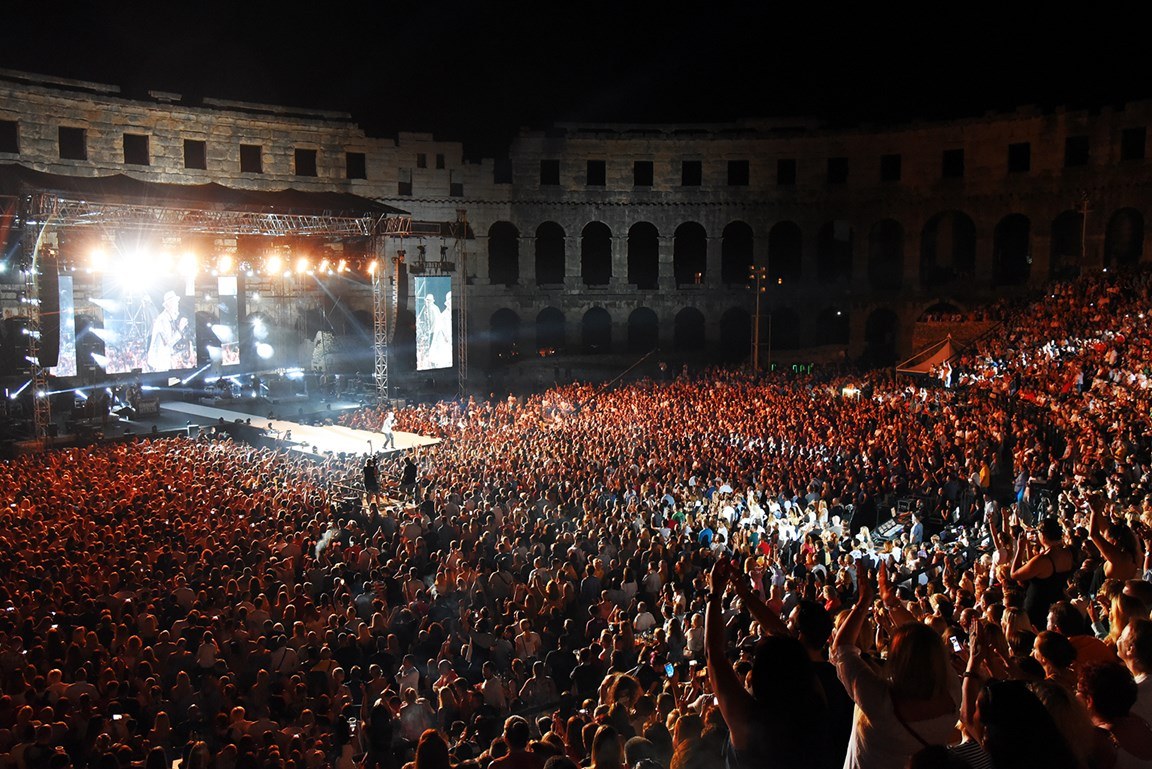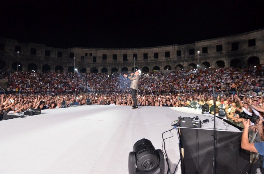 I još jedan trijumfalni povratak i to u samo nekoliko dana u pulski amfiteatar. Nakon 2CELLOS i Stinga na pozornicu pulske Arene u petak navečer popeo se Dino Merlin i priredio pravi show. Imao je zašto Dino Merlin biti dobro raspoložen jer njegov drugi pulski koncert nakon osam godina bio rasprodan i došla je njegova vjerna publika koja je uživala u showu nazvanom "Hotel Nacional" prema njegovom aktualnom albumu, a naravno da nisu izostali ni njegovi stari hitovi koji su obožavateljicama i obožavateljima toliko prirasli srcu. (M. Ra.)
