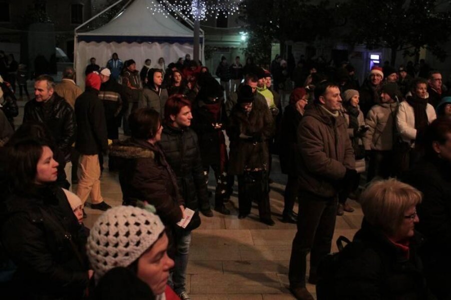 Ni hladna bura uz temperatura zraka koja se jučer navečer kretala oko ništice nije spriječila znatiželjnike i dobronamjerne da na Trgu slobode prisustvuju izvlačenju dobitnika Božićne lutrije Društva invalida Poreč, gdje su ih sa pozornice priređene za večerašnji doček Nove godine besplatnom humanitarnom svirkom počastili članovi popularnog benda Le Monde.
