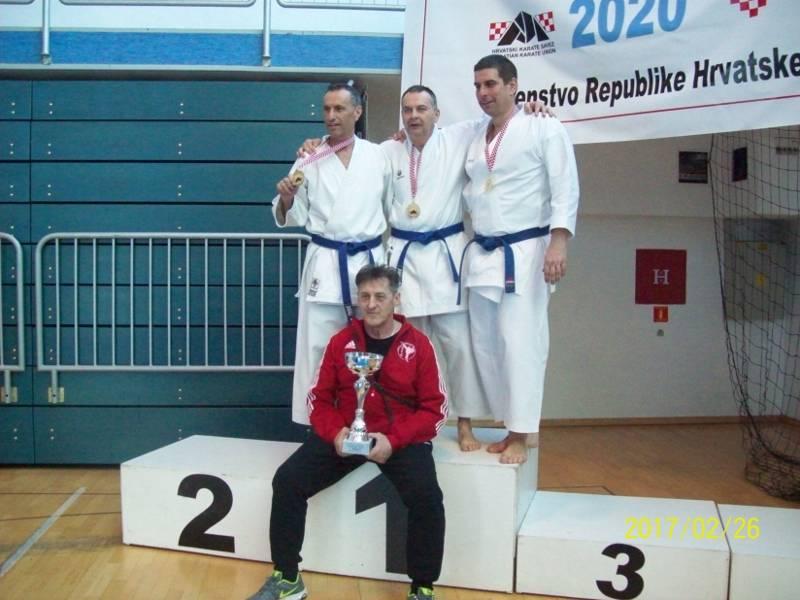 Veterani Finide osvojili su 4 vrijedne državne medalje. Najprije je na tatami izašla već uigrana ekipa u sastavu Josip Leutar, Marko Paliaga i Amir Rešidović. Sjajnim i sinkroniziranim izvedbama kata glatko su se probili do finala gdje su čistom pobjedom 5:0 osvojili zlatno odličje i potvrdili svoju dominaciju. (Valja napomenuti da im je ovo već treće uzastopno finale PH).