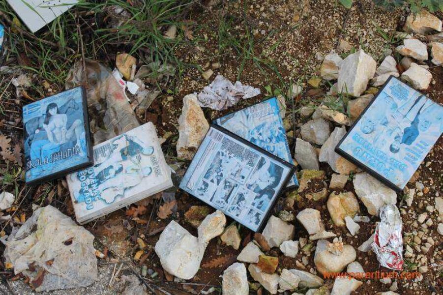 U jednome dijelu možete vidjeti i nekoliko krevetnih madraca, dok su "Škola jahanja", "Slovenac u Beogradu" i "Porno debitantice" samo neki od naslova pornića odbačenih uz šutu, prekrivače i PVC vreće raznog sadržaja.
