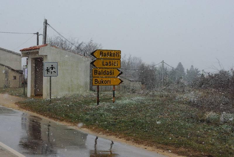 Snijeg i susnježica nastavljaju padati na sjeveru Poreštine i u Višnjanu, između Baderne i Sv. Lovreča manje oborina