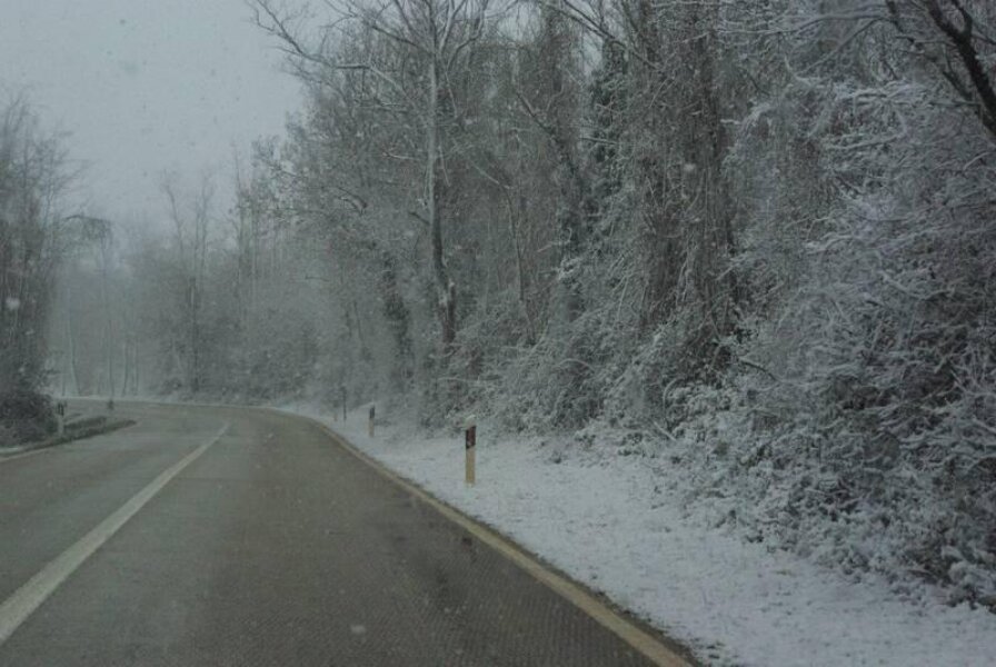 Prilično gust snijeg trenutno pada na području Poreča, Kaštelira i Vižinade. Zbog nedovoljno niske temperature ne zadržava se na tlu, ali je vidljivost u prometu značajno smanjena, a i kolnici su klizavi. Zbog toga i dalje upućujemo vozače da dodatno pripaze na siguran razmak među vozilima a brzinu prilagode uvjetima na cesti.