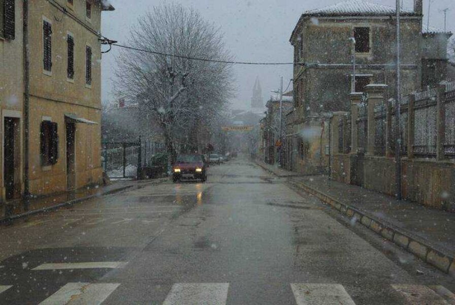 Oko 15 sati u Višnjanu je počeo padati obilniji snijeg koji se počeo hvatati za kolnik. Ceste nisu posute niti je za očekivati da će uskoro biti, pa je na dionicama Višnjan-Tičan i Tičan-Baderna potreban pojačan oprez.