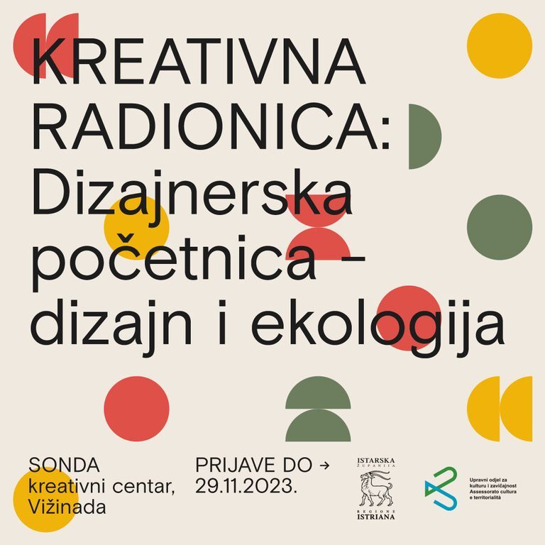 Mladi koji žele istražiti svijet dizajna i pritom saznati kako doprinijeti očuvanju našeg planeta sada se mogu prijaviti na radionicu "Dizajnerske početnice" koja će biti održana u subotu 2. prosinca u 10 sati u Vižinadi.