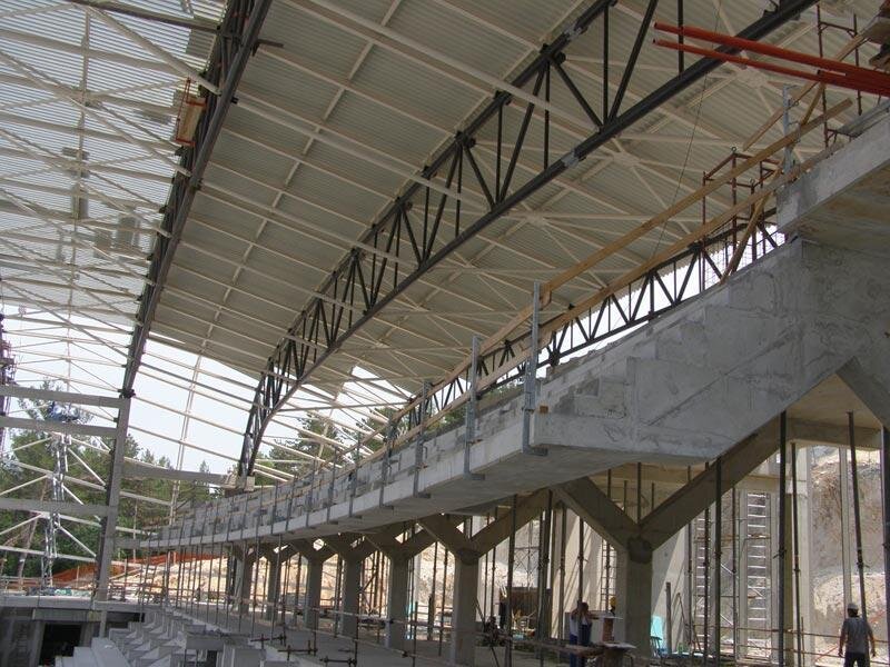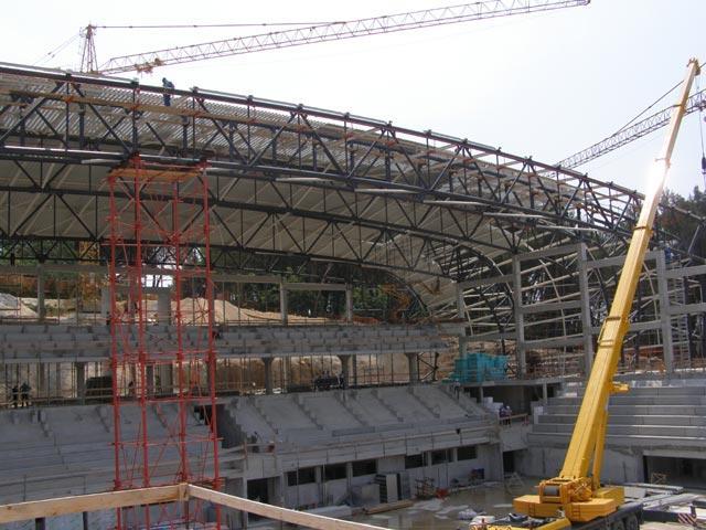 Izgradnja dvorane je u okviru planiranoga, nema nikakvog kašnjenja - rekao je gradonačelnik, a u to smo se i sami uvjerili prilikom današnje posjete gradilištu. Sada već impozantna građevina poprima svoj konačni oblik. Zatvorena sa tri strane a otvorena prema prometnici Poreč-Baderna, predstavlja pravi mravinjak sa velikim brojem radnika, ogromnim količinama materijala, proizvoda i poluproizvoda, od stiropor-ploča pa do nekoliko tona teških elemenata goleme krovne konstrukcije. Fotografirajući sa plastičnim šljemom na glavi uvjerili smo se da radnicima po ovim vrućinama nije ni malo lako, ali oni kažu da su na takve uvjete navikli, te da im daleko veći problem od vrućine predstavljaju kiša, blato ili smrzavica i led.