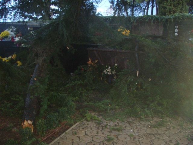 Za nevremena koje je noćas i jutros zahvatilo šire područje Istre, jedno stablo u blizini cvjećarnice na porečkom gradskom groblju nije izdržalo nalet vjetra, pa se srušilo na ogradni zid. Srećom, nije se prevrnulo u unutrašnjost groblja, pa nema zabilježenih šteta na grobnicama.