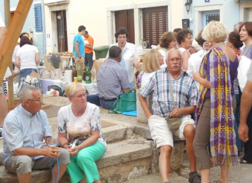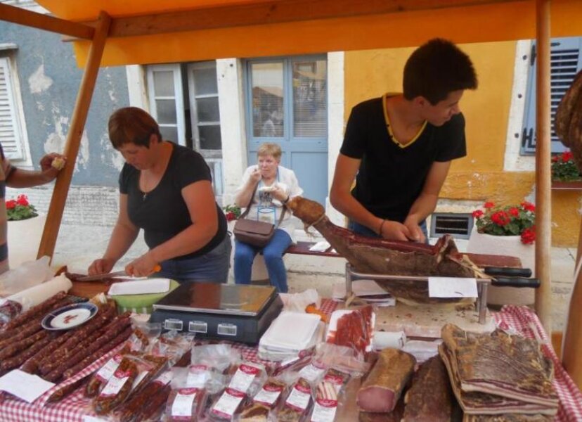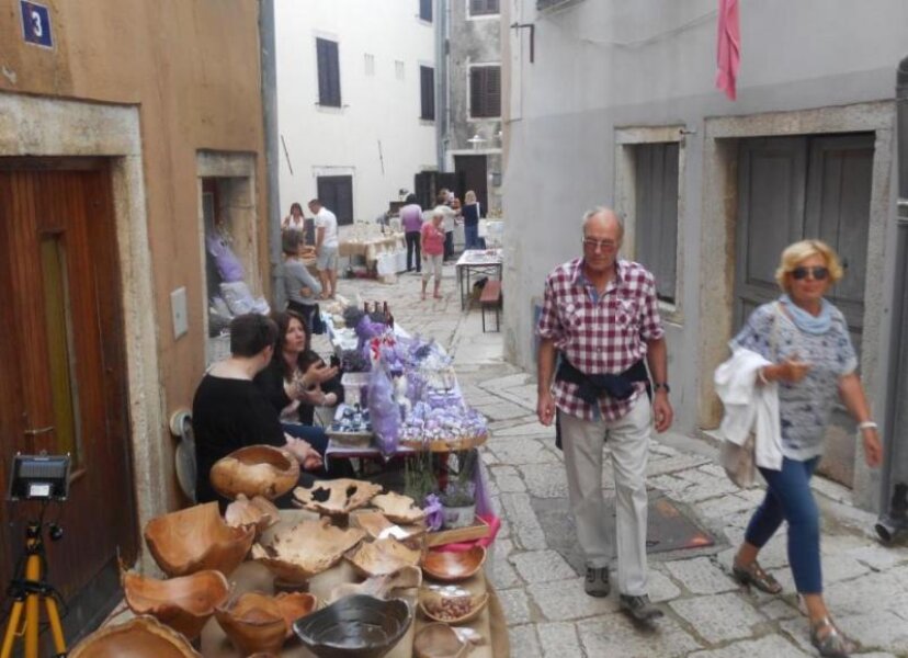 Preko puta cijela obitelj Franjul iz Svetog Petra u Šumi nudi suhomesnate proizvode iz vlastitog OPG-a: odlični pršut, kobasice, pancetu. Formula jednostavna: kod Marinelle po kruh i onda preko na pršut kod Franjula. Između stajale su vrsarske ljepotice (je li to Casanova zabilježio u svojim memoarima?) koje su nudile vino. Vrsaran Đanfranko Deak obukao je odijelo gastalda i nadgledao.