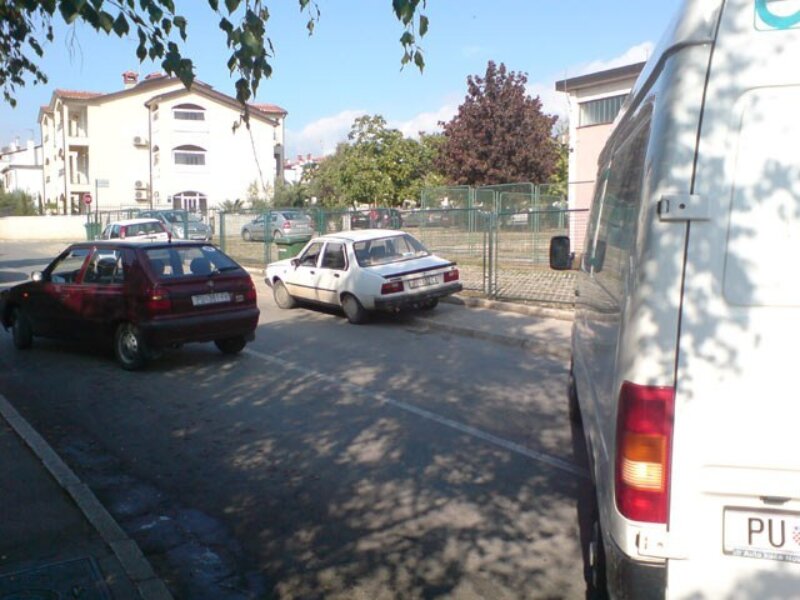 Prvo je naišla vlasnica Škode Felicije i parkirala ukoso, tako da kraj nje jedva poneki automobil može proći. Onda su naišli drugi automobili, a pojavom kombija nastao je potpuni kaos.