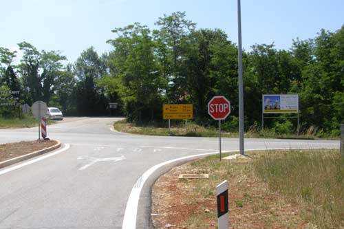 A u Bačvi imamo cestu, okomitu na naš smjer kretanja, koja se nalazi PRIJE putokaza.